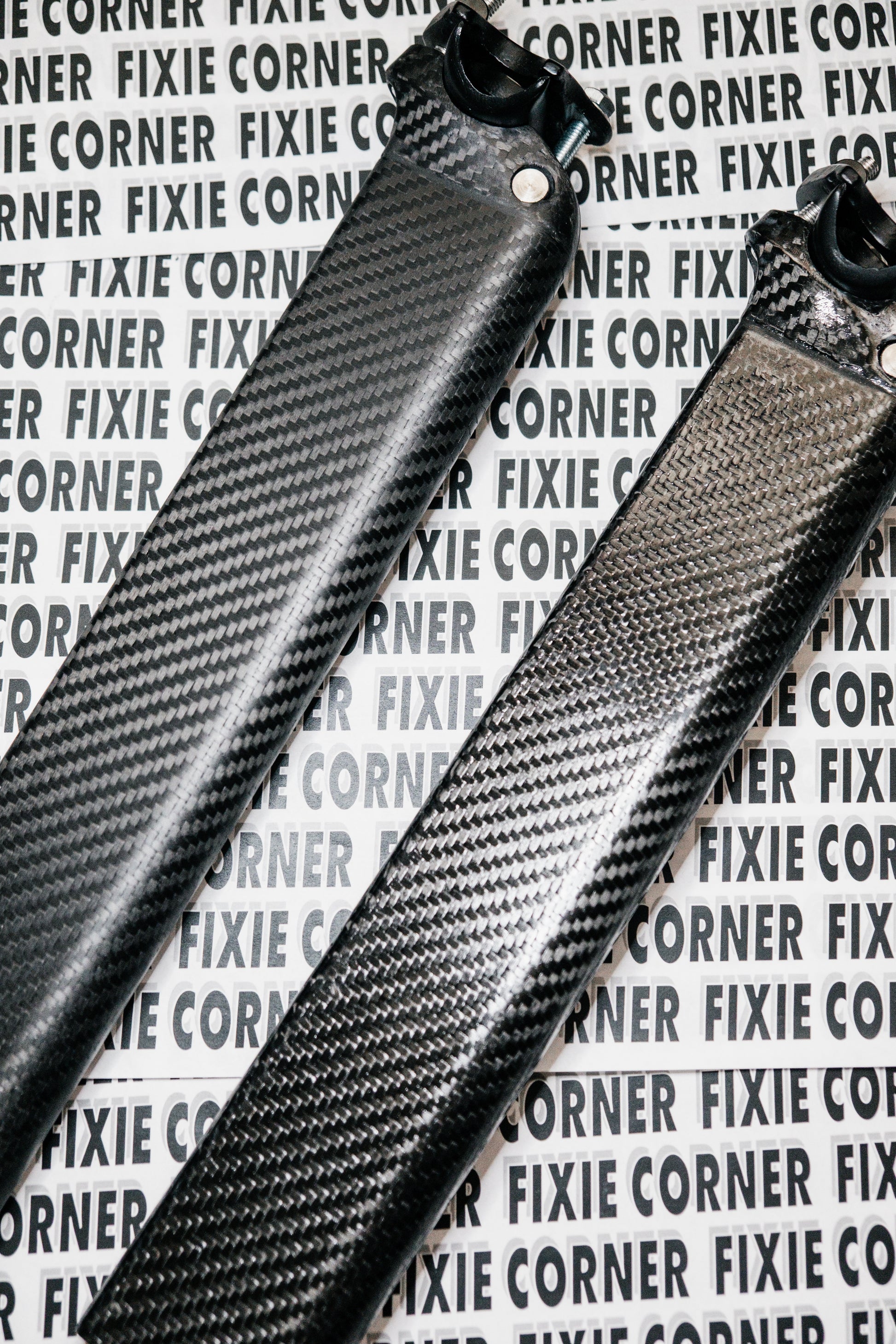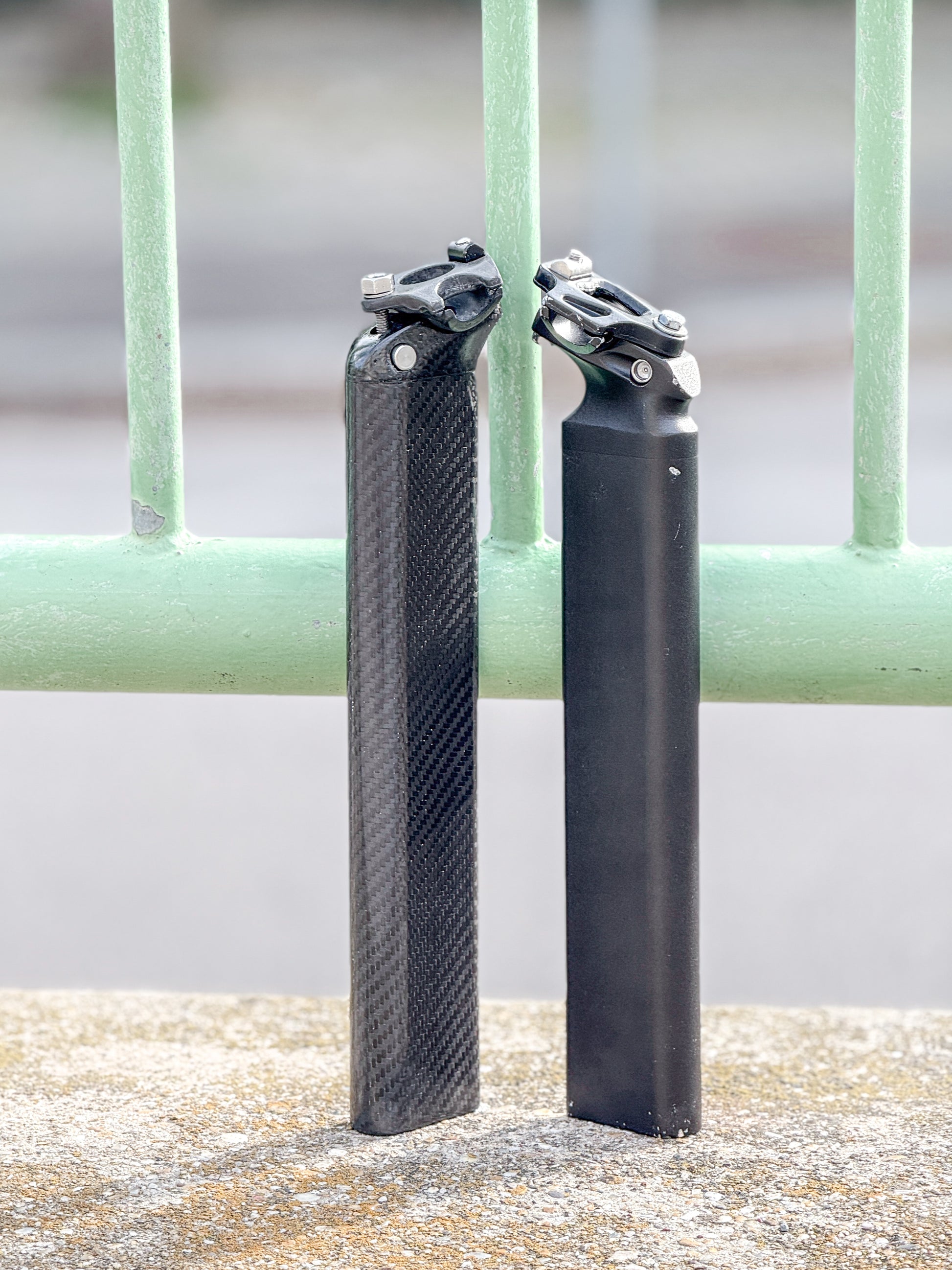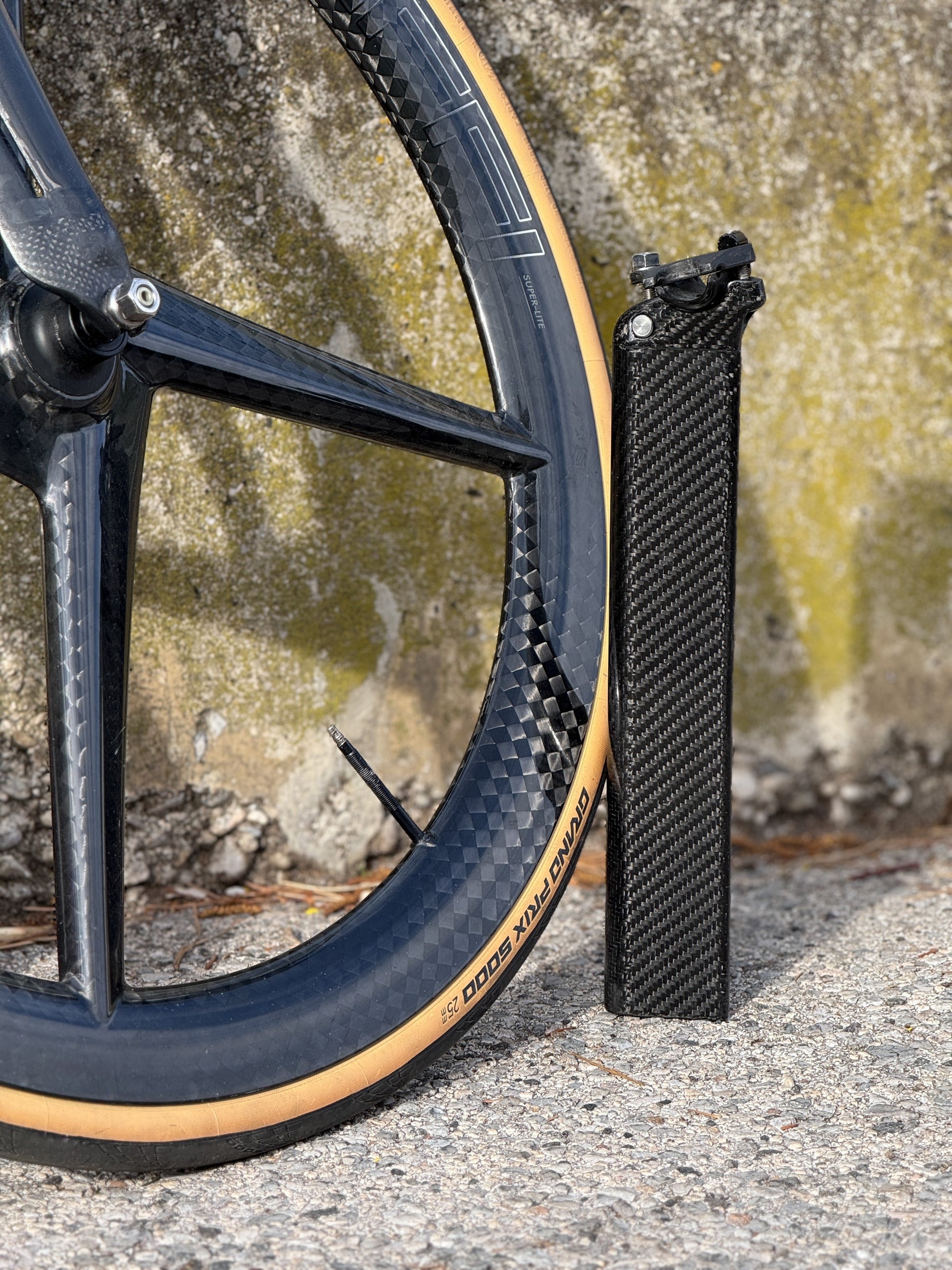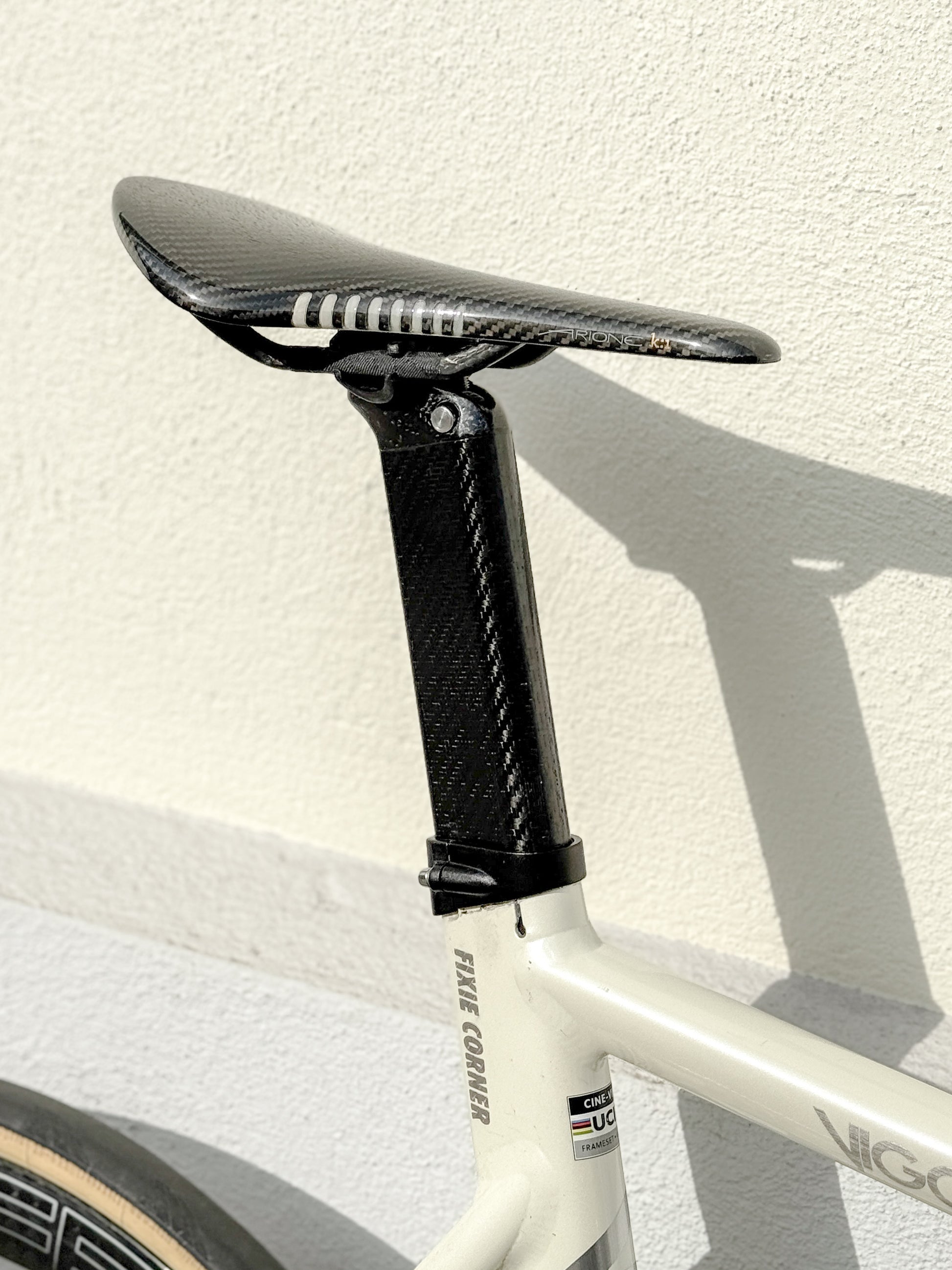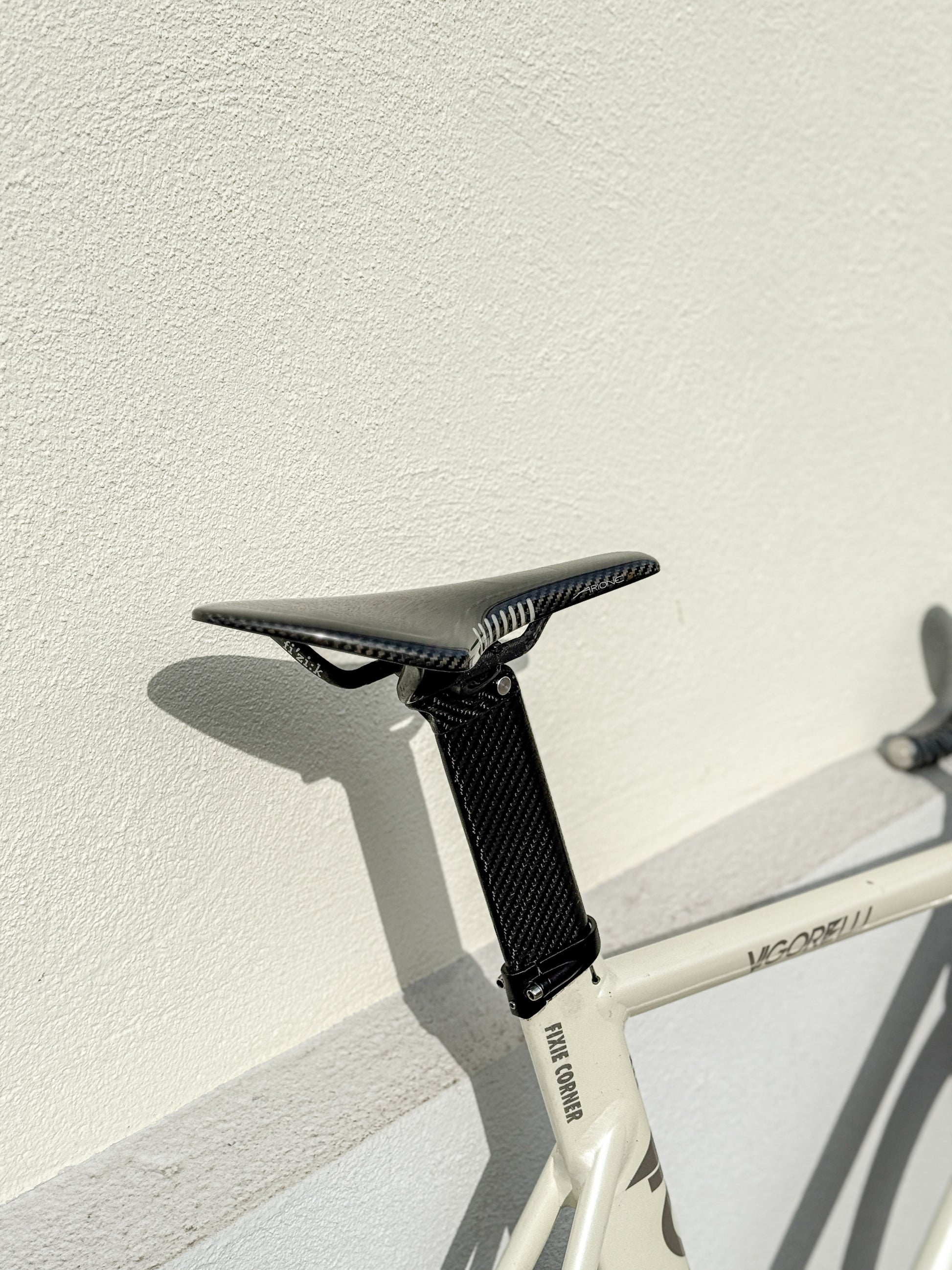 I couldn’t find any seatposts made of carbon fiber that fits these frames and then I decided to make my own. My friend how is experienced in making carbon fiber parts and even frame sets made my idea real.